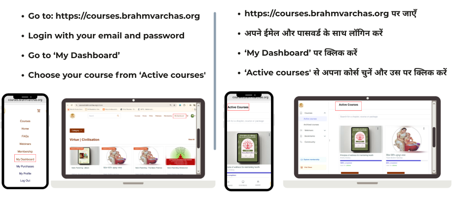 Please check whether you are using the same email, which was used for purchasing/using the access code. Check for the course in your Active Courses section. If the course is still not available, please drop an email to support@brahmvarchas.org